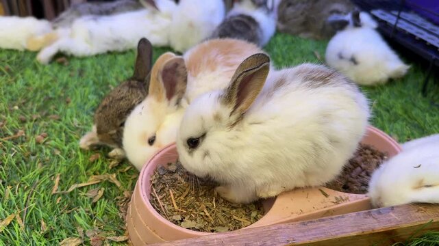 a spring-themed illustration featuring adorable isolated bunnies and rabbits running, jumping, and bouncing all set on a transparent background and provided in PNG. Generative AI