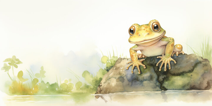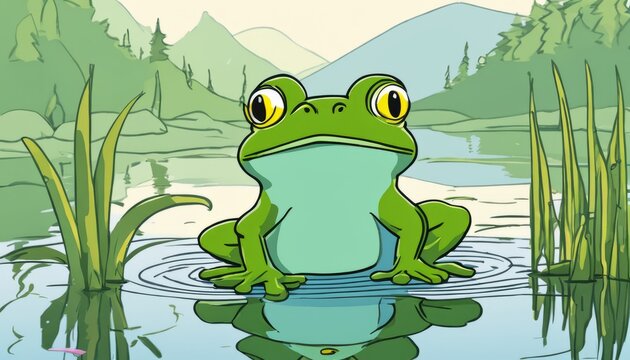 Illustration of a cute frog on an sunny day