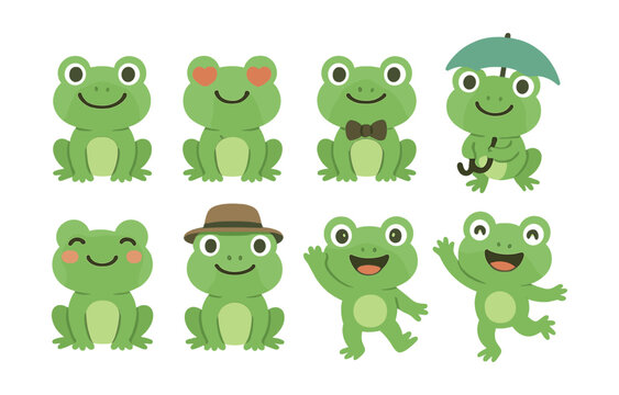 Charming frog icons set: adorable cartoon frogs in flat style. Vector icons