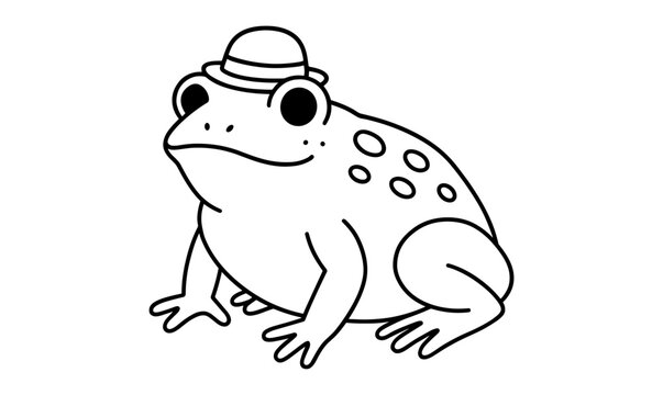 Cute cartoon frog wearing a hat in black and white outline