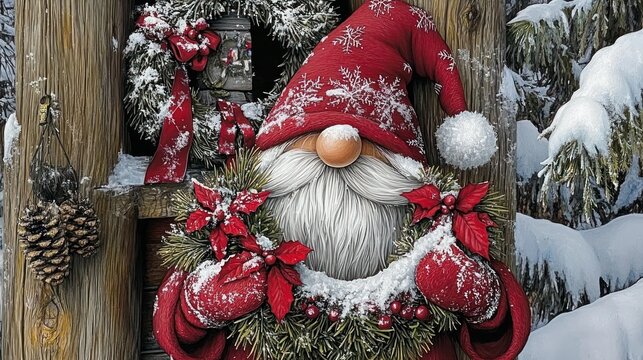 Cheerful snowman with red scarf and hat smiling in snowy winter scene against blurred blue background with copy space