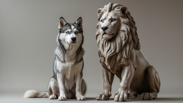Real and wooden animal sculptures displayed as decorative art pieces, highlighting craftsmanship and natural materials