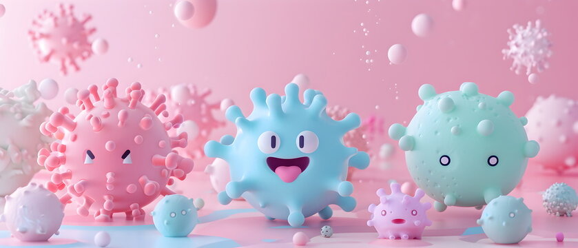 3D clay, Adorable clay Germs, viruses, bacteria, fungi, epidemics, muted pastels, Blender 3d, colorful kawaii model, disease