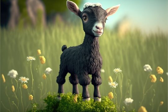 a cute adorable baby goat generative ai  rendered in the style of children-friendly cartoon animation fantasy style