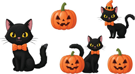 Vector art of cute cartoon black cat and pumpkins