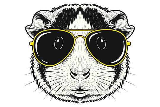 Vector art of cool guinea pig wearing aviator sunglasses funny pet animal with style, vector illustration for tshirt, sticker, or print design with a touch of humor