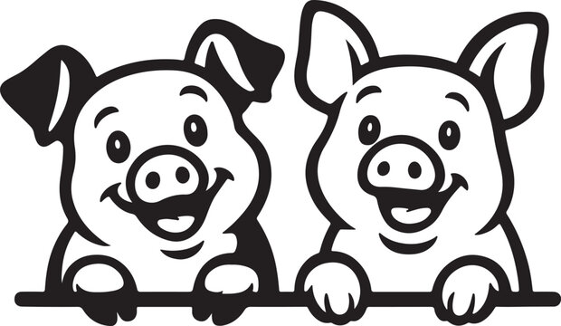 Pigs peeking clip art silhouette vector art illustration