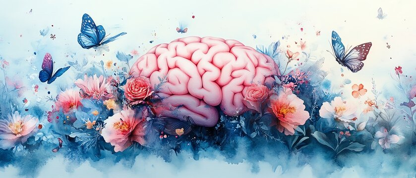 A fantasystyle watercolor artwork of a pink brain