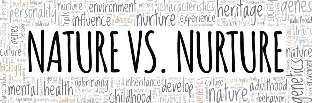 Nature vs. Nurture word cloud conceptual design isolated on white background.