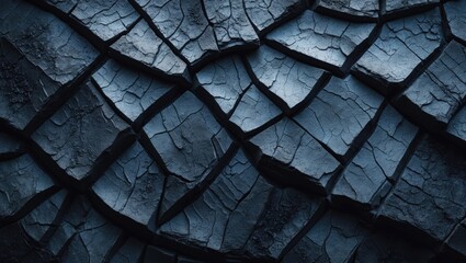 Top-down view of natural cracked black activated charcoal surface for backgrounds.