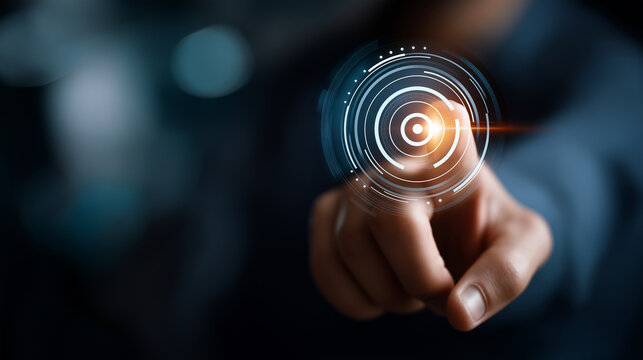 Faceless user selecting audience target on virtual screen for digital marketing business strategy visualization customer segmentation interface personalization tools online adv