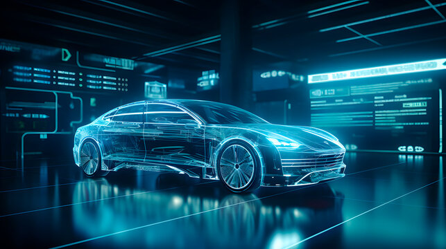 Transparent image showing car structure and frame through Xray technology. Concept X-ray Car Structure, Transparent Image, Automotive Technology, Vehicle Frame, Engineering Technology