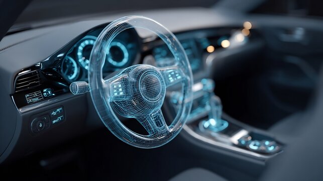 Smart car technology with Headsup Display autonomous driving sensors radar and graphics. Concept Smart Car Technology, Heads-Up Display, Autonomous Driving, Sensors, Radar, Graphics
