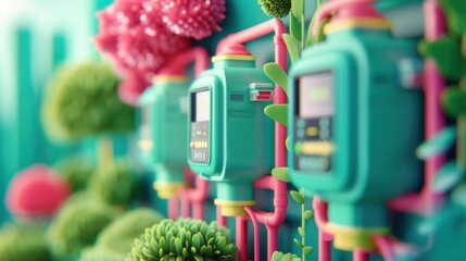 Design a detailed digital artwork of smart meters and grid management systems, symbolizing advanced energy technology.