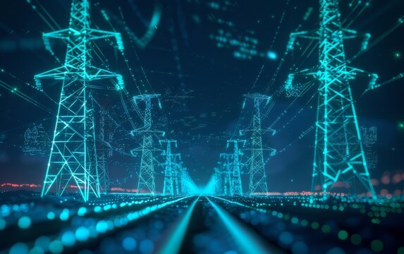 A futuristic city’s smart energy grid dynamically allocates electricity based on real-time consumption analytics at night. Generative AI