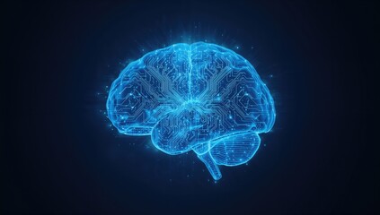 Virtual brain in blue hues showcasing advanced scientific and medical innovations