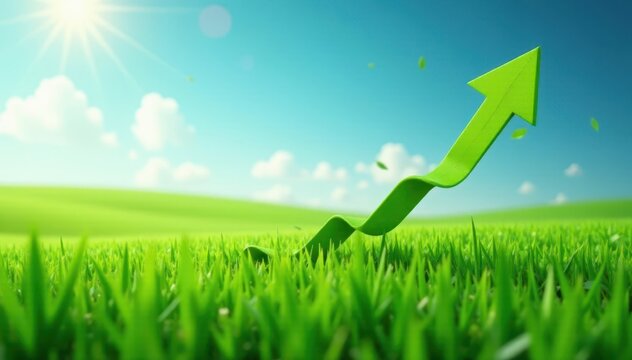 Arrow pierces vibrant green field, symbolizes growth , progress, advancement