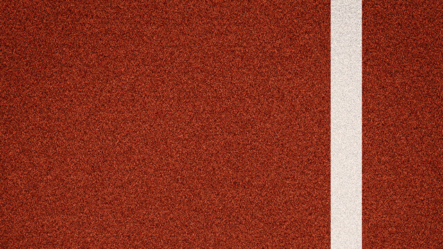 Clay tennis court surface with white line, top view