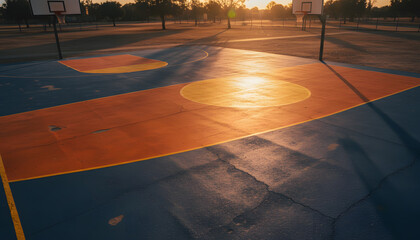 An empty indoor tennis court with dramatic lighting, symbolizing anticipation, potential, competition, sportsmanship, and athleticism.