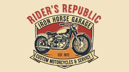 Vintage Motorcycle Emblem Design with Ride Free Since 1968 Text.