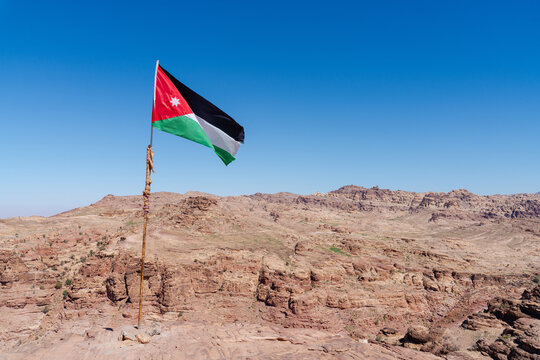 Jordan Flag Waving in Rocky Desert Landscape