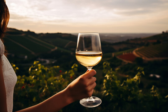 White Wine Toast with Scenic Vineyard View