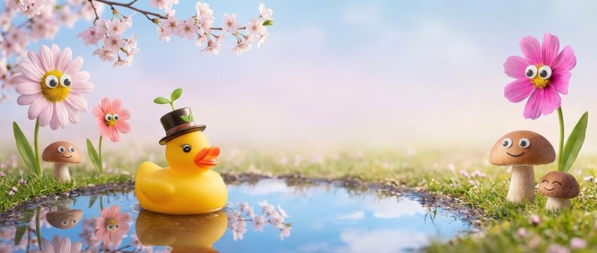 Penguins in Chef Hats Swimming in Blue Water Background