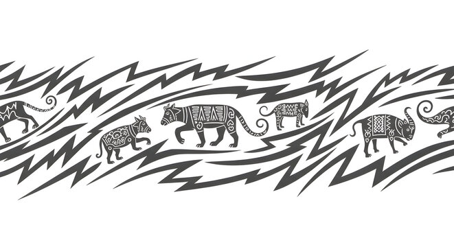 Tribal animal pattern with lightning bolt accents, perfect for bold designs and adventurous themes.