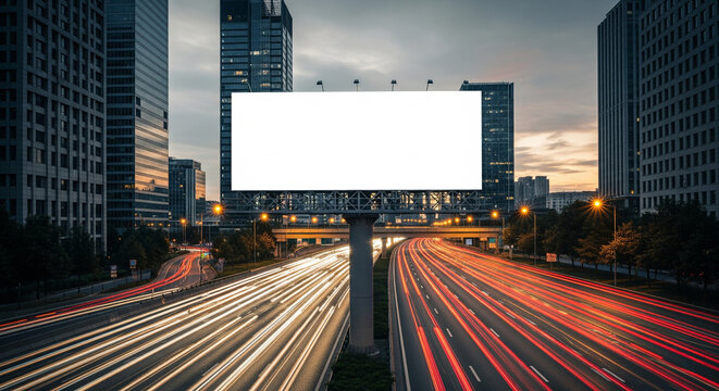 Empty outdoor advertising billboard on a city street, ready for your design or advertisement, with a blurred urban background.