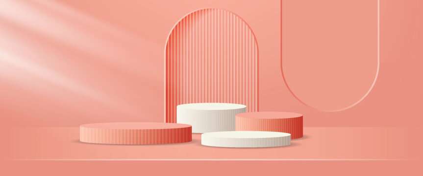 Abstract white stage mockup with blank contrast arch for presentation cosmetic product, design, advertising in modern minimal simple style.