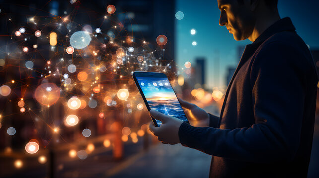 Eco-friendly businessman analyzing sustainable practices in modern office