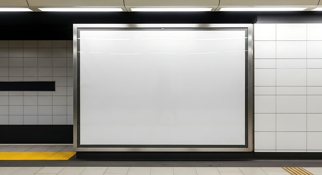 Blank Advertisement Poster Frame in a Public Transit Station.
