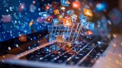 Online sales concept of digital marketing, ad, product ads, promotion of products or services through digital tools. Online advertising concept Internet advertising digital marketing Social media