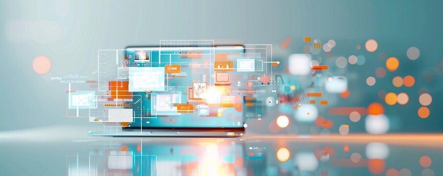 Minimalist digital background with laptop and online advertising visuals, highlighting new strategies