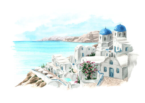 The view on Aegean sea and cruise ship, Santorini island, Greece