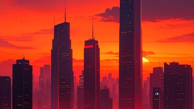 Aerial View of Modern Stadium Surrounded by Urban Cityscape at Night with Bright Stadium Lights and Dramatic Cloudy Sky