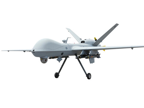 Modern military unmanned aerial vehicle drone with advanced surveillance technology isolated on transparent background