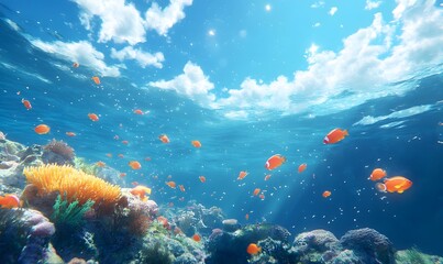 Vector illustration of a beautiful blue sky with realistic clouds. Captivating panoramic view with soft and natural cloud formations, perfect for backgrounds, web, and design projects.