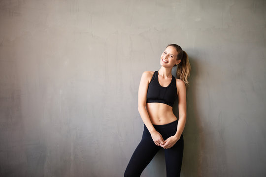 Beautiful girl doing exercises and sport. Posing on a pink colored background