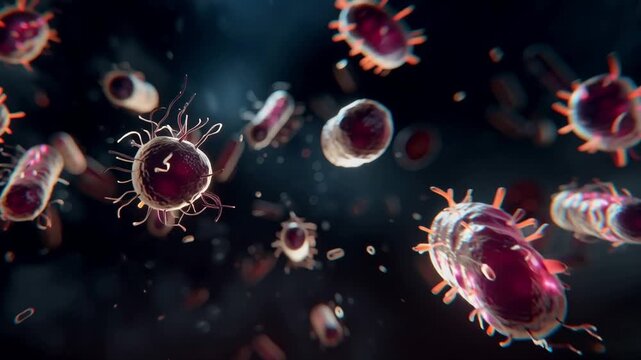 cancer cell animated visualization of bacteria resisting immune system defenses effectively, dynamic depiction of rodshaped bacteria battling immune responses and survival