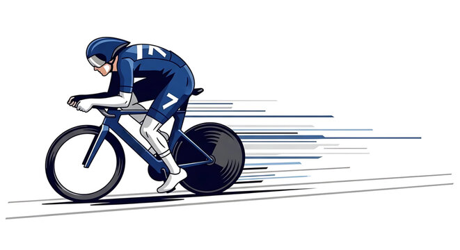 Dynamic cyclist illustration showcasing speed and determination in a sleek aerodynamic design against a clean white backdrop portraying momentum and athletic prowess