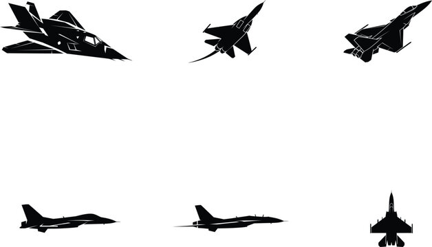 A black and white graphic of a fighter jet flying in a stylized vector illustration