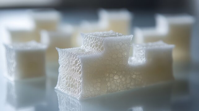 Exploring the intricate textures of polymer aerogels a closeup look at their porous structure in a laboratory setting under scientific analysis
