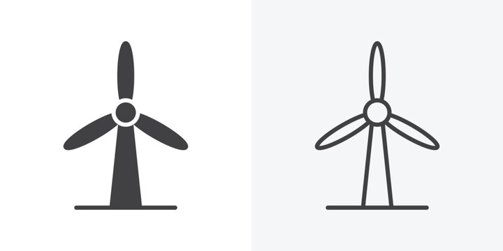 A blue digital illustration of a wind turbine generating clean energy on a dark background