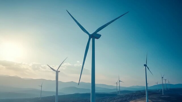 Wind turbines silhouetted against a golden sunrise. Renewable energy production at its finest. Sustainable power for a brighter future. Clean energy and a green tomorrow.