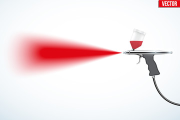 Airbrush with paint spray. Car Painting or artwork. Makeup airbrush. Editable Vector illustration Isolated on white background.