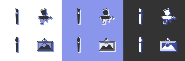 Set Picture landscape, Paint brush, and spray gun icon. Vector