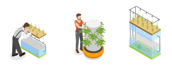 3D Isometric Flat  Illustration of Hydroponics, Aeroponics And Aquaponics In Greenhouse, Agriculture Methods for Crop Cultivation