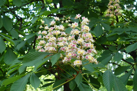Aesculus hippocastanum,blossom of horse chestnut or conker tree springtime