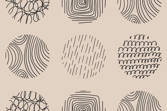 Abstract round shapes. Scribble seamless pattern for textile poster fabric design. Vector freehand trendy concept